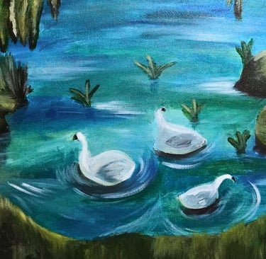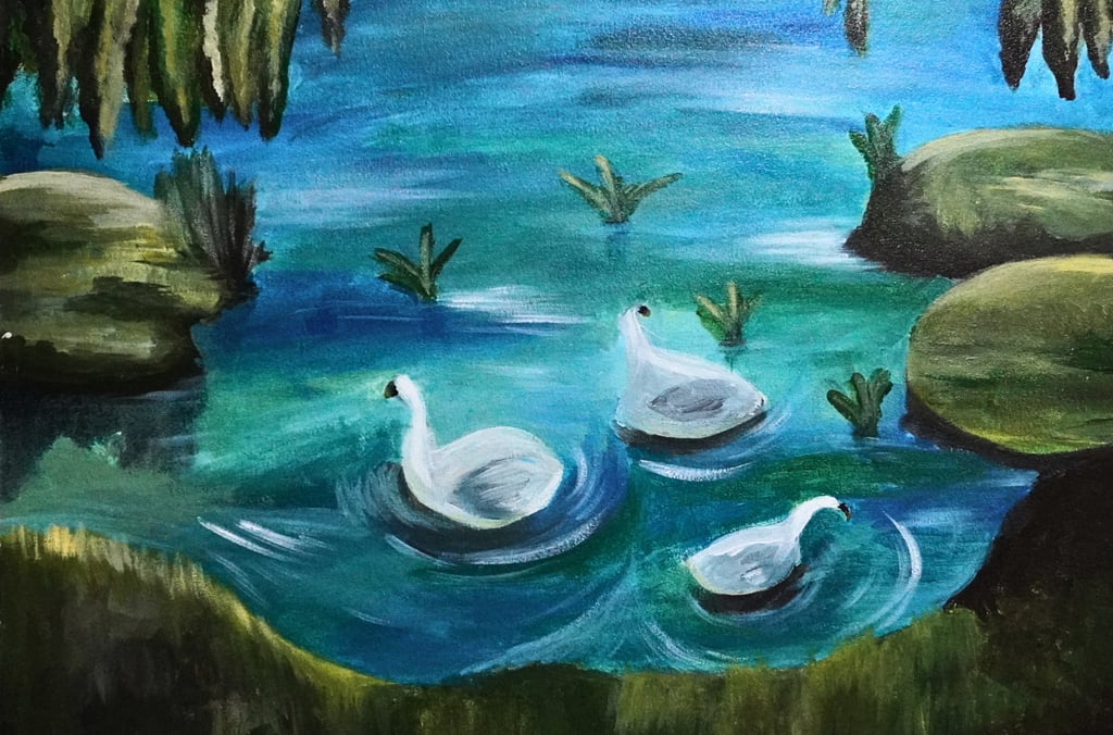 These three swans represent feelings that move side by side: doubt, hope, and love.